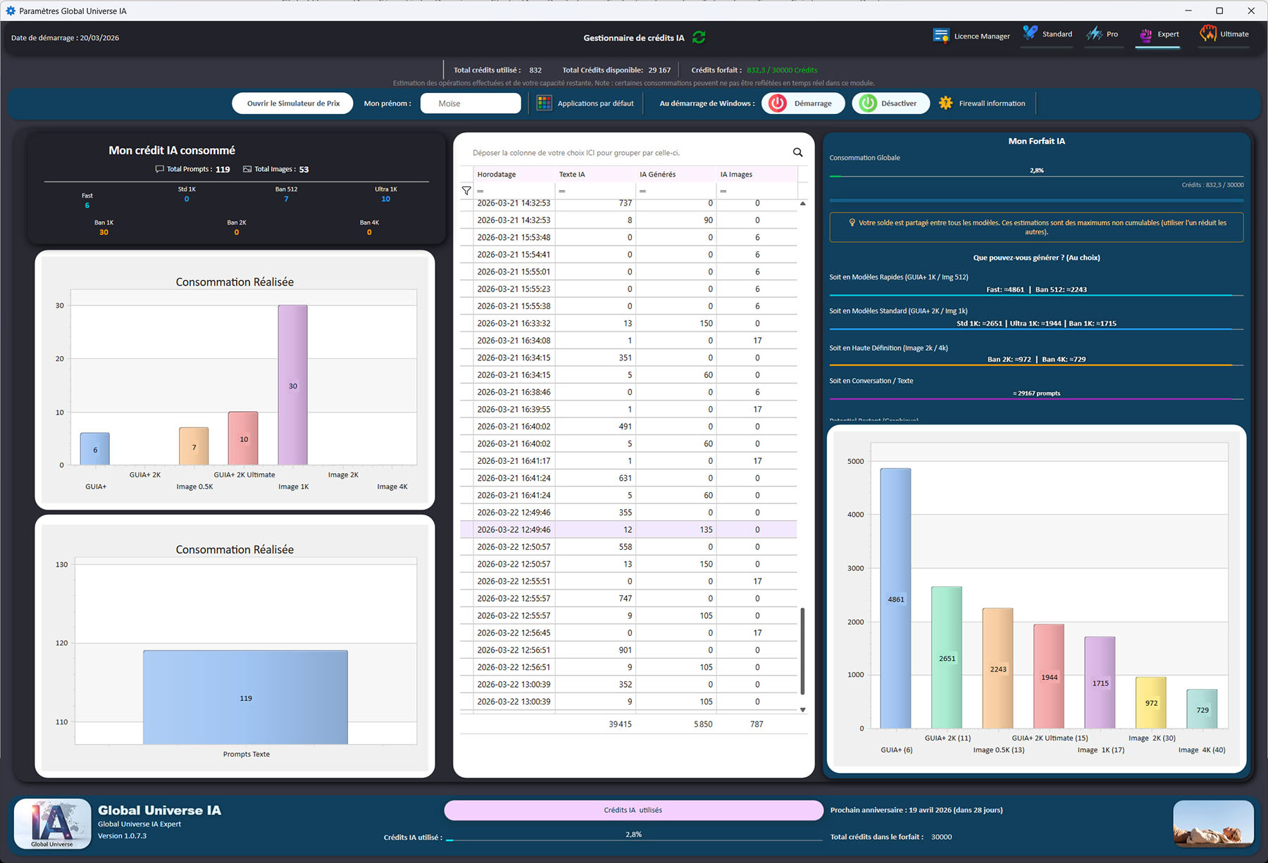 Compte à rebours avant renouvellement : L’affichage du « prochain anniversaire » (ex: dans 26 jours) permet de planifier les gros travaux de génération en fonction de la date de recharge des crédits.