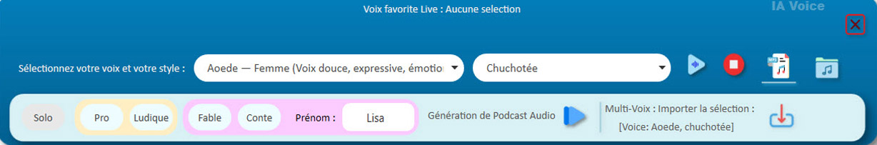 - Créer des discussions dynamiques entre plusieurs intervenants virtuels automatisés (mode Duo/Podcast).